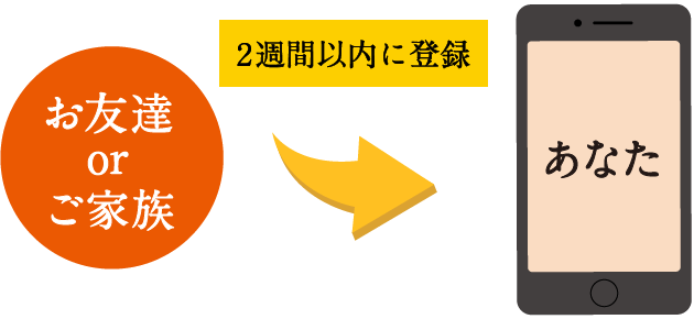 2週間以内にお手続きをいただかなかった場合は、ご紹介者様への特典発行がされませんのでご注意ください。