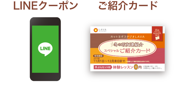 ホットヨガスタジオLAVAでは お友達紹介特典について Gift1 じっくりおためし! 通常1回のところ 体験レッスン0円×2回 Gift2 ヨガグッズ・大人気サプリも買える! LAVAポイント(会員様とお2人合計) 20,000円分 \しかも/LINEでのご紹介でご入会いただくと...さらにLAVAポイント1,000円分(お2人合計)追加でプレゼント!