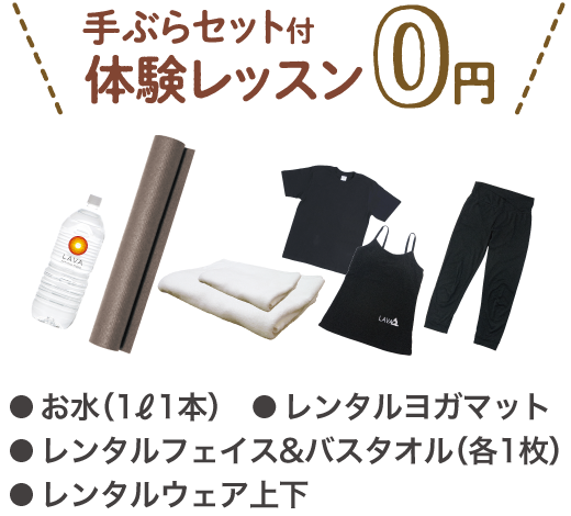 - ※過去5ヶ月以内にLAVAの体験レッスンか見学会を受講、またはLAVA、Rintosull、FIVE ELEMENT FIT、UPPER 9いずれかにてマンスリー登録をしていない方、およびBurnesStyleでプレミアム・フリー・フルタイム(Break)に登録をしていない方が対象となります。