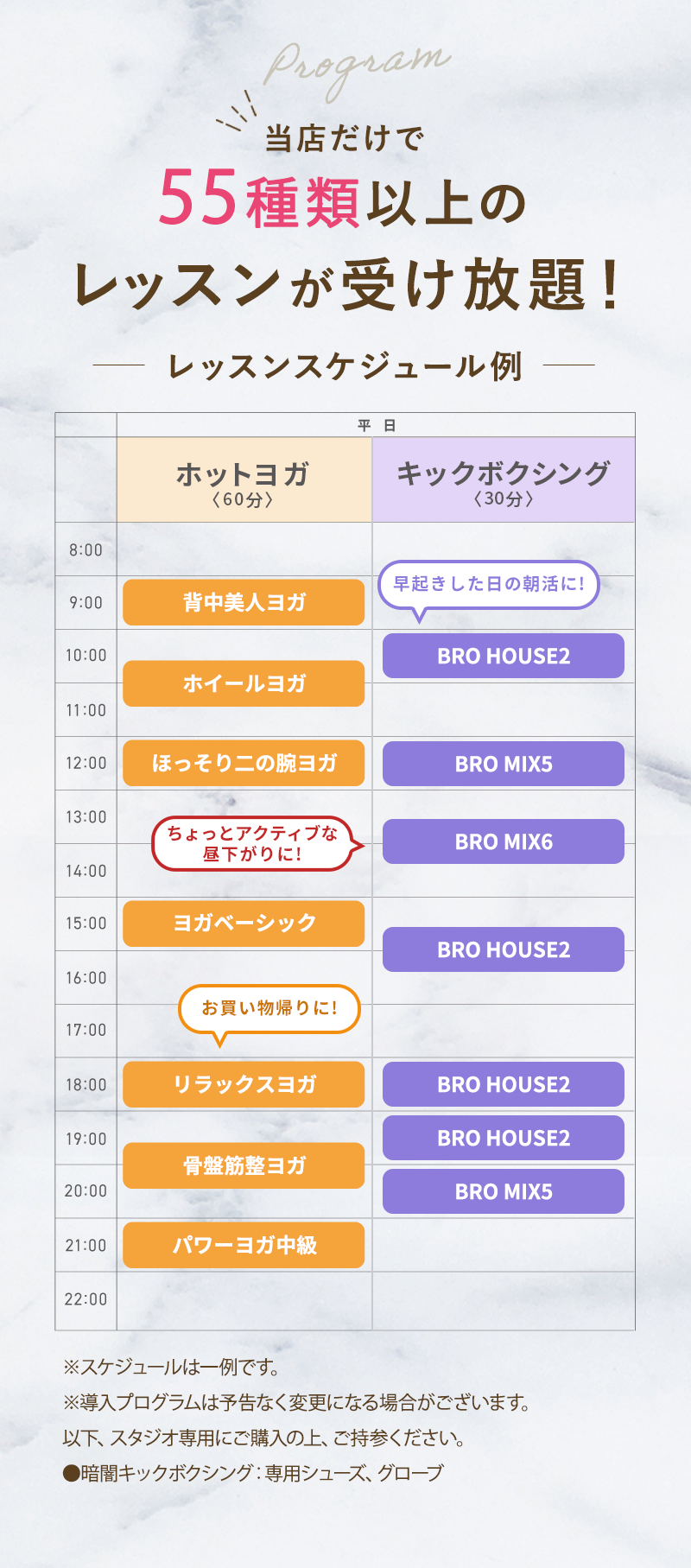 ※1 マシンピラティスRintosull・暗闇キックボクシングBurnesStyleは、一部ご利用いただけない店舗がございます。今後オープン予定の店舗については、都度ご案内させていただきます。