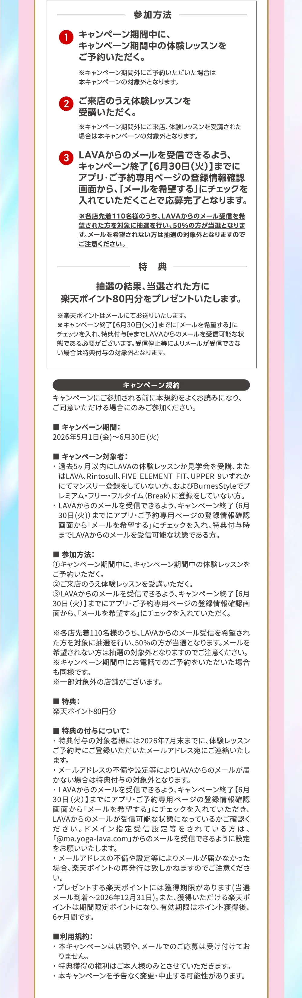 過去5ヶ月以内にLAVAの体験レッスンか見学会を受講、またはLAVA、Rintosull、FIVE ELEMENT FIT、UPPER 9いずれかにてマンスリー登録をしていない方、およびBurnesStyleでプレミアム・フリー・フルタイム(Break)に登録をしていない方が対象となります。 - ※2全てレンタル用品