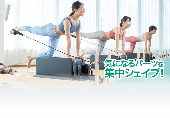 マシンピラティスでは「リフォーマー」という専用マシンを使用。部位にピンポイントで負荷がかかり、全身のストレッチにも効果的!効率よく体幹を鍛え、強くしなやかなボディへと導きます。マシンがカラダの動きをサポートするので、初めての方でも安心です。