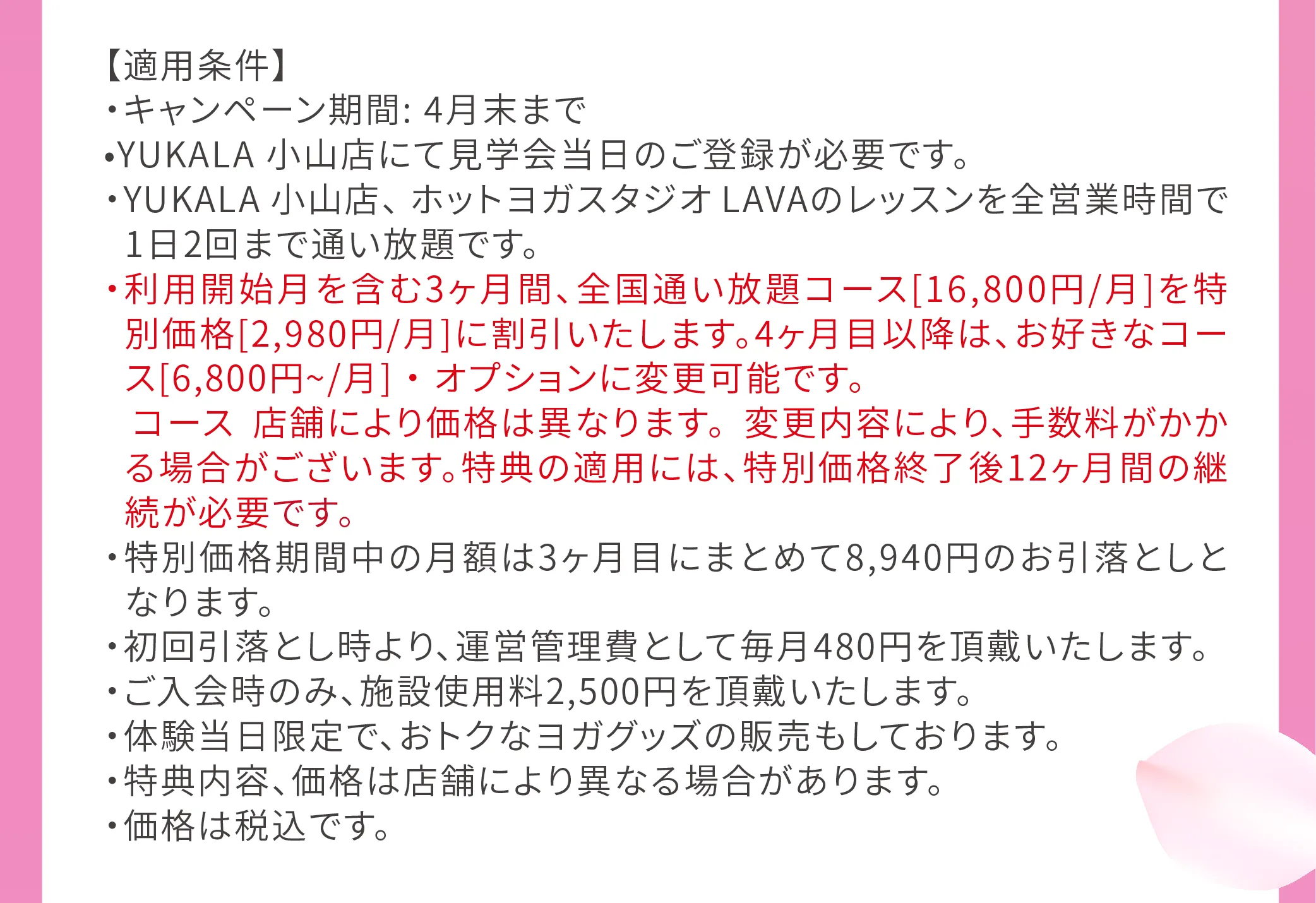 ※過去5ヶ月以内にLAVAの体験レッスンか見学会を受講、