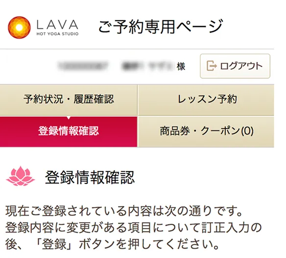 ご予約専用ページにログイン後、「登録情報確認」をクリック