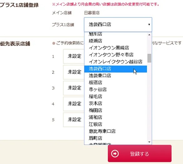 - プラス1店舗の変更は、メイン店舗にてお手続きください。