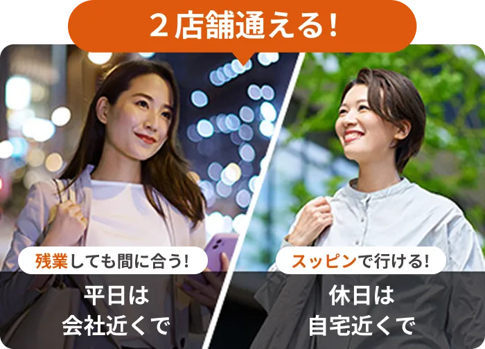 プラス1店舗のご登録で、2店舗通い放題に!