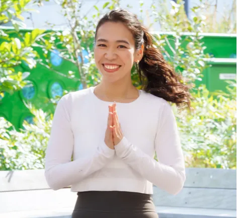 学生時代はミュージカルを学び舞台で活動。ダンスなどを学ぶなかでヨガに出合う。自分としっかり向き合うことの出来るヨガに魅了され、ヨガインストラクターの道へ。2020年よりトップインストラクターとして活動。ヨガイベントやヨガ講座なども開催。2022年度社内表彰式のレッスンスキル部門で全国1位・グランプリを受賞。ヨガを通して心の健康がカラダの健康や美しさ、輝きに繋がることを日々実感している。今、この瞬間を大切にすることをモットーにレッスンに向き合い、自身の学びを深めている。