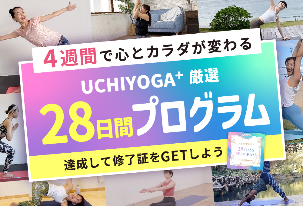 program特別プログラム program UCHIYOGA+はいつでも手軽に、日常の中で習慣化できるサービスを提供できるよう目的に沿ったレッスンを好きな時間・内容で選べるプログラムシリーズを開発しています。 音楽とヨガを楽しむ 【期間:14日間】 短期集中ダイエット 【期間:21日間】 まずはここから 【期間:28日間】