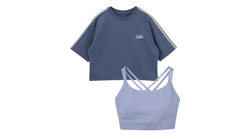 クロップド丈のTシャツとブラトップがセパレートになったアイテム。それぞれ単品での着こなしも楽しめます。Tシャツはコットンライクな肌触りで、ラインテープとロゴ刺繍がスポーティーな印象。クロップド丈でウエスト位置が高く見え、スタイルアップ効果も期待できるデザイン。ブラトップはシンプルなデザインでコーディネートしやすい1枚。アンダーバスト部分は幅広ゴム内蔵でしっかりバストをサポートし、ホールド感も◎どちらも吸水速乾加工を施した、肌触りも爽やかな素材を使用。ストレスフリーに着こなせます。軽く動きやすいのでヨガやピラティスはもちろん、トレーニングやスポーツシーン、タウンユースとしても重宝するアイテムです。