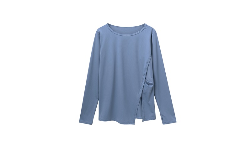 アシンメトリーに入ったスリットが、カラダのラインを美しく魅せてくれるロングスリーブトップス。手の甲までカバーする指穴は、日焼け対策はもちろん、動きを妨げず身体の動きに対応してくれます。長めの着丈が気になる腰回りをカバー。吸水速乾加工を施した機能性素材を使用し、リラックスタイムの他、ヨガやピラティス、行き帰りのデイリーウエアとしても最適な1枚です。全てWebでしか買えない限定商品です。