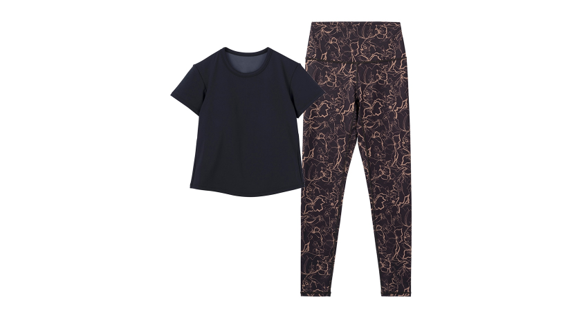 ■大人女子が着たいボタニカルプリント。二の腕カバーが叶うカップ付きTシャツ&レギンスのセットアップ