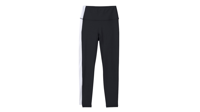 ■アシンメトリーに切り替えた、バイカラーデザインが映えるハイウエストレギンス