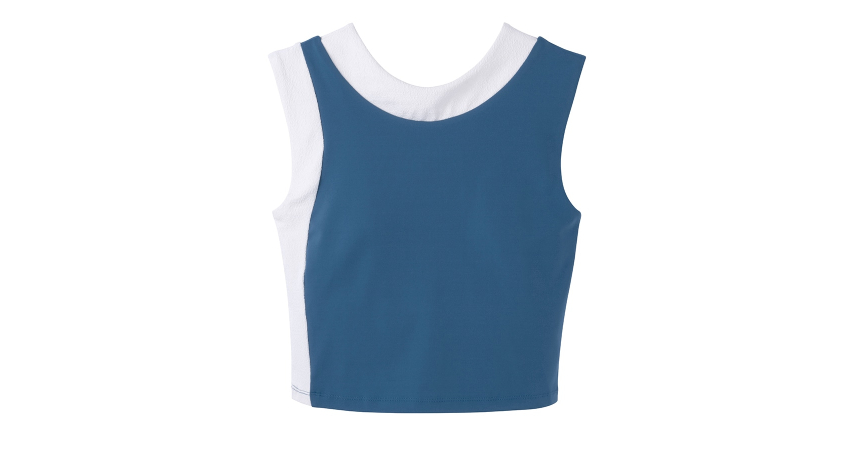 ■アシンメトリーに切り替えた、バイカラーデザインが映えるショートタンクトップ