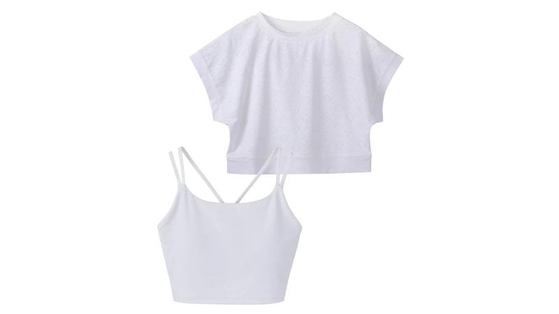 レース使いのプルオーバーとブラトップがセパレートになったアイテム。それぞれ単品での着こなしも楽しめます。ブラトップはシンプルなデザインでコーディネートしやすい一枚。アンダーバスト部分は幅広ゴム内蔵でしっかりバストをサポートし、ホールド感も◎プルオーバーは前面レースのヨガウェアとは思えないリッチなデザイン。ストレッチ性に優れた肌なじみの良い吸水速乾素材を使用。