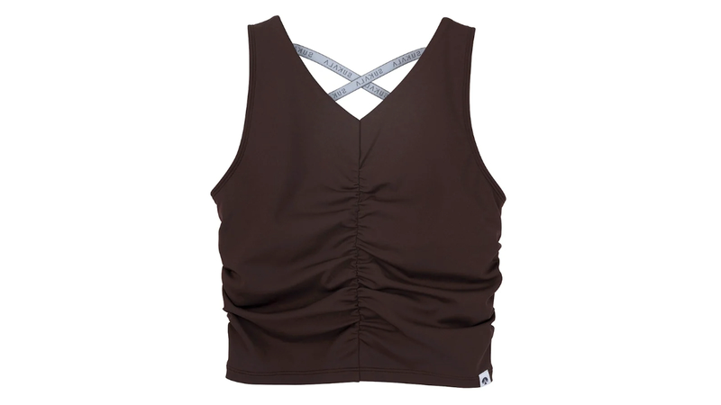 ■華奢なクロスストラップが背中を美しく見せる。SUKALAロゴストラップをあしらったバックシャンデザインのブラトップ