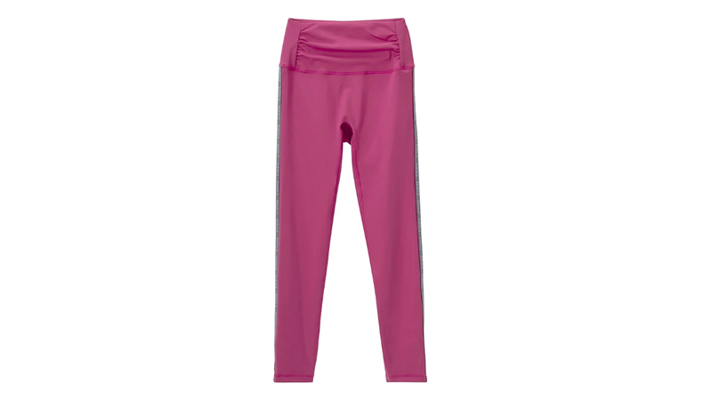 シンプルでありながらもラインプリントがスポーティーでオシャレなレギンス。縦ラインがスタイルアップを叶えます。レッグラインにフィットするパターン設計で、しっかりフィットするのに締め付け感がないストレスフリーな着用感のレギンス。工場内で発生した不使用糸などを原料とする、リサイクル繊維を使用した環境に優しいナイロン・ポリウレタン素材を使用。環境に優しいだけではなく、吸水速乾の機能を兼ね備えた、ヨガウェアに最適なストレッチ素材を使用。ホットヨガに最適です。