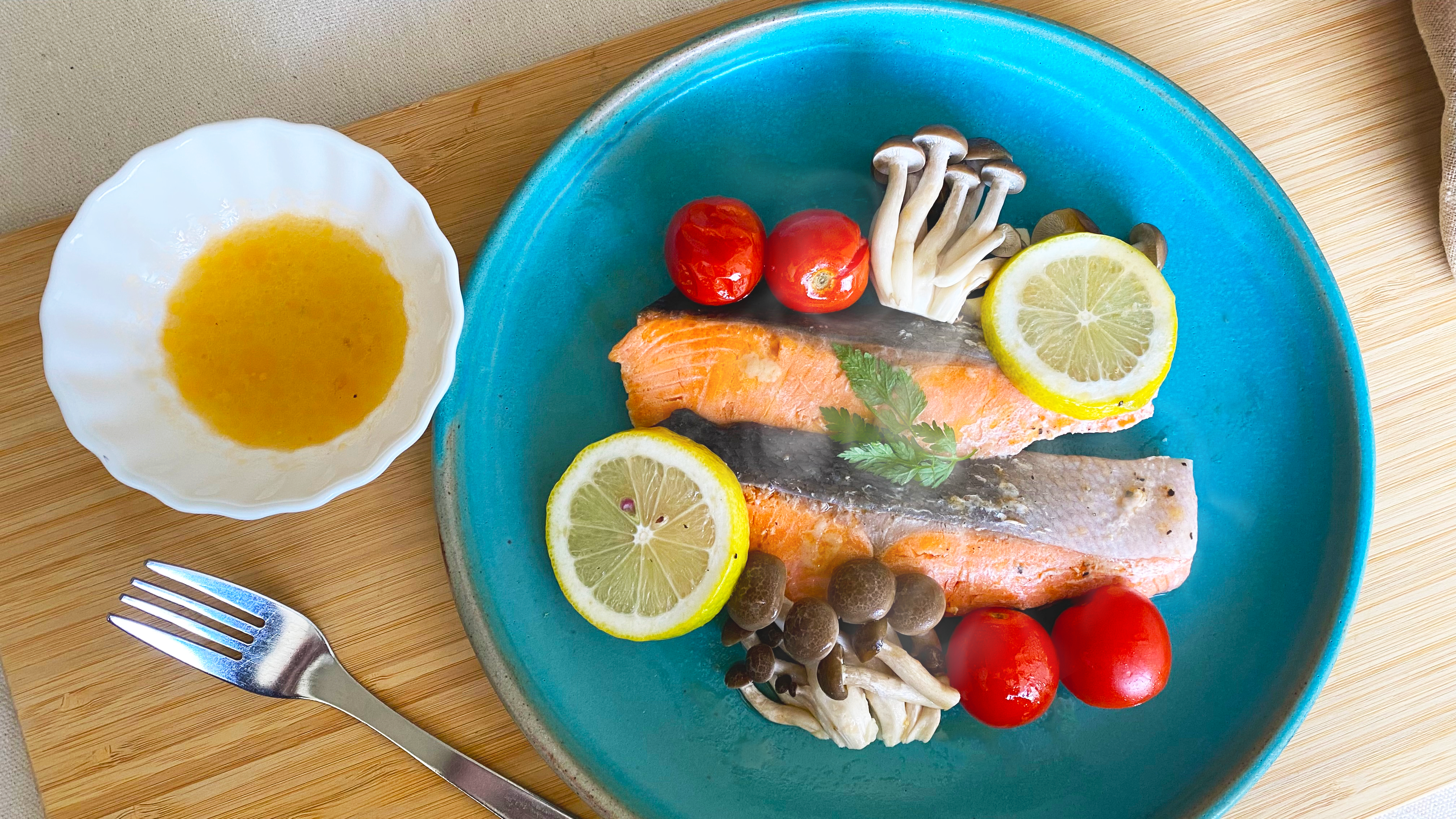 【夜ごはん】鮭ときのこのレモン酒蒸し(BRMソース)レシピ