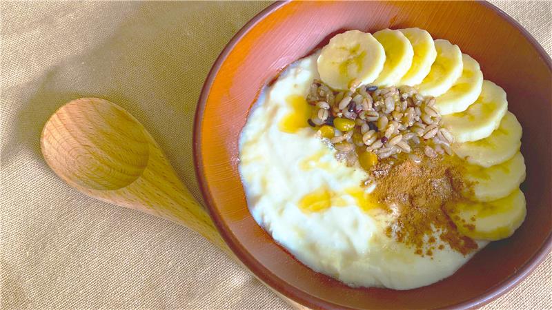 【朝ごはん】もち麦×ヨーグルト with シナモンバナナのレシピ
