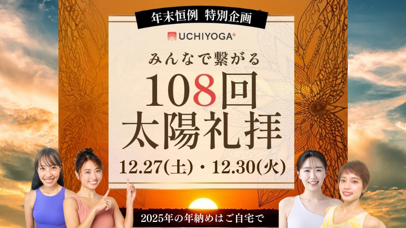 毎年の恒例となるオンラインヨガ・フィットネス『UCHIYOGA+』の「みんなで108回太陽礼拝」